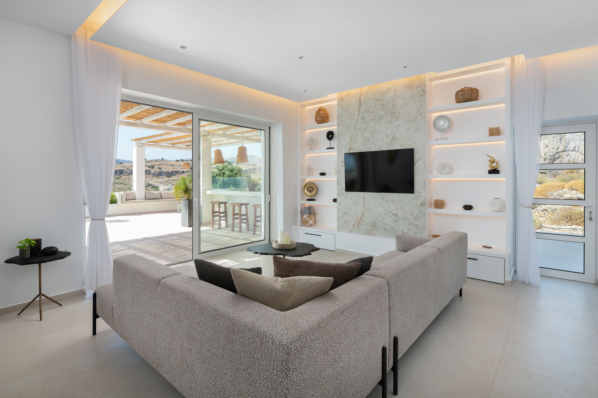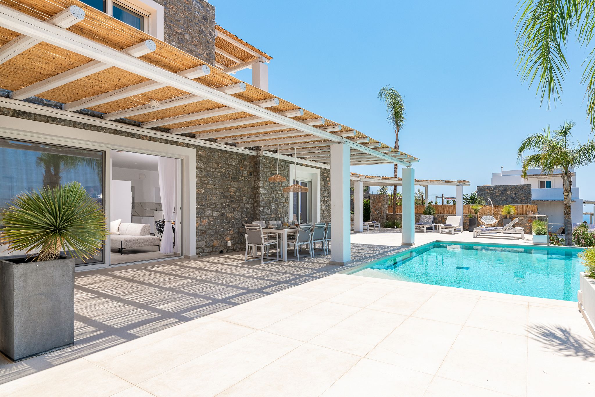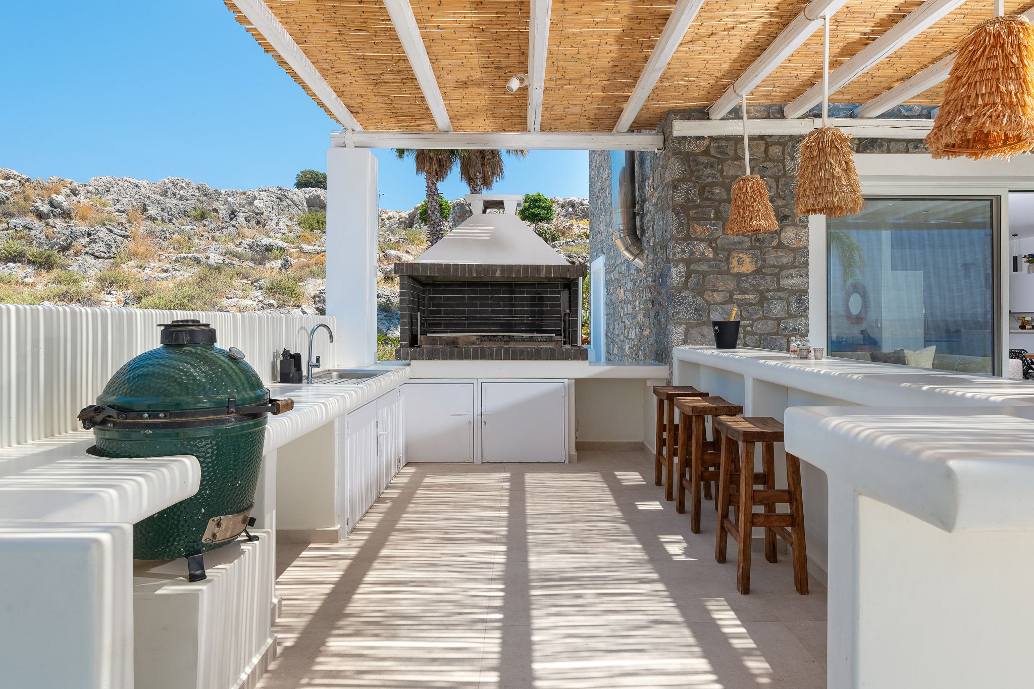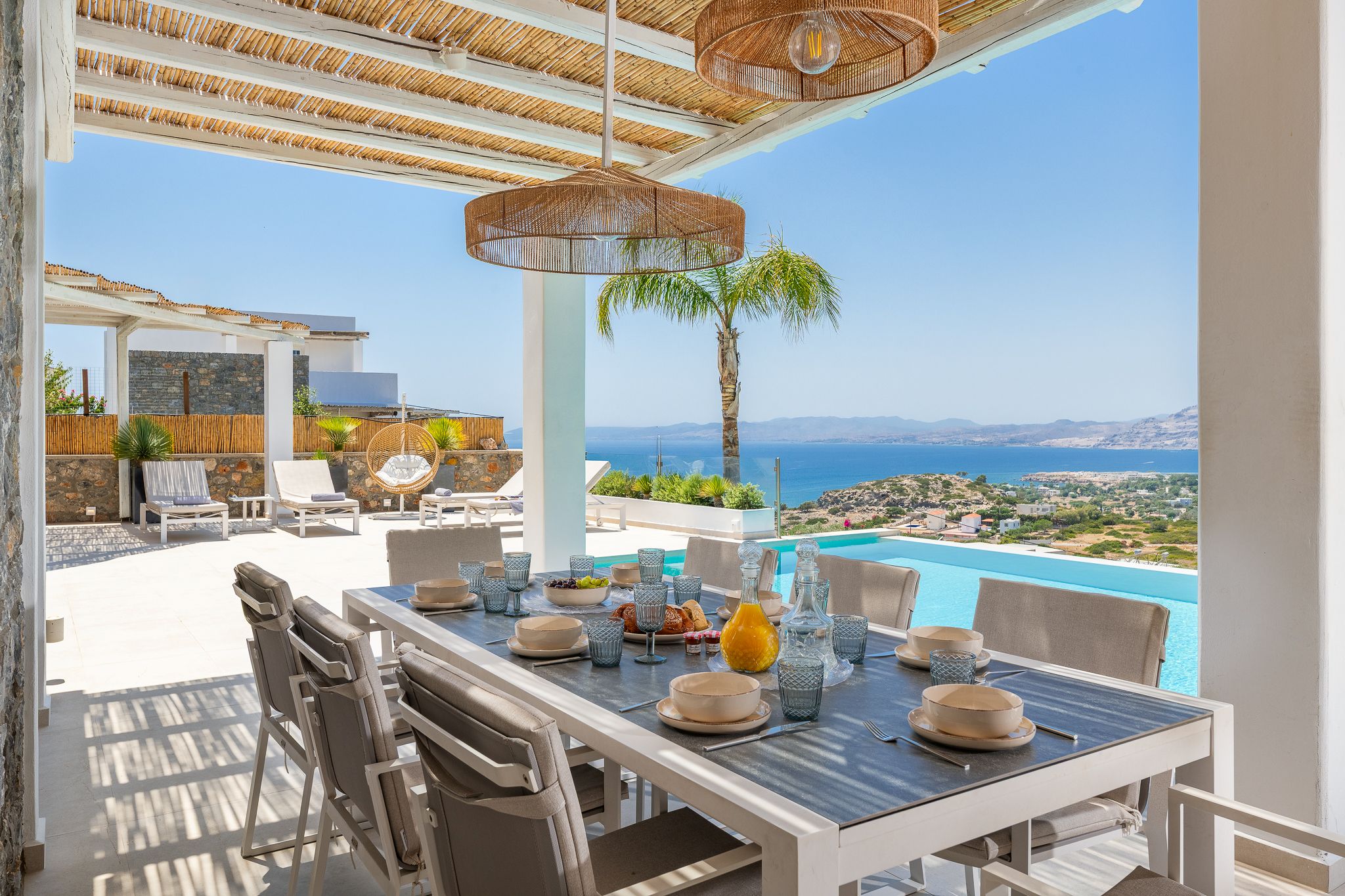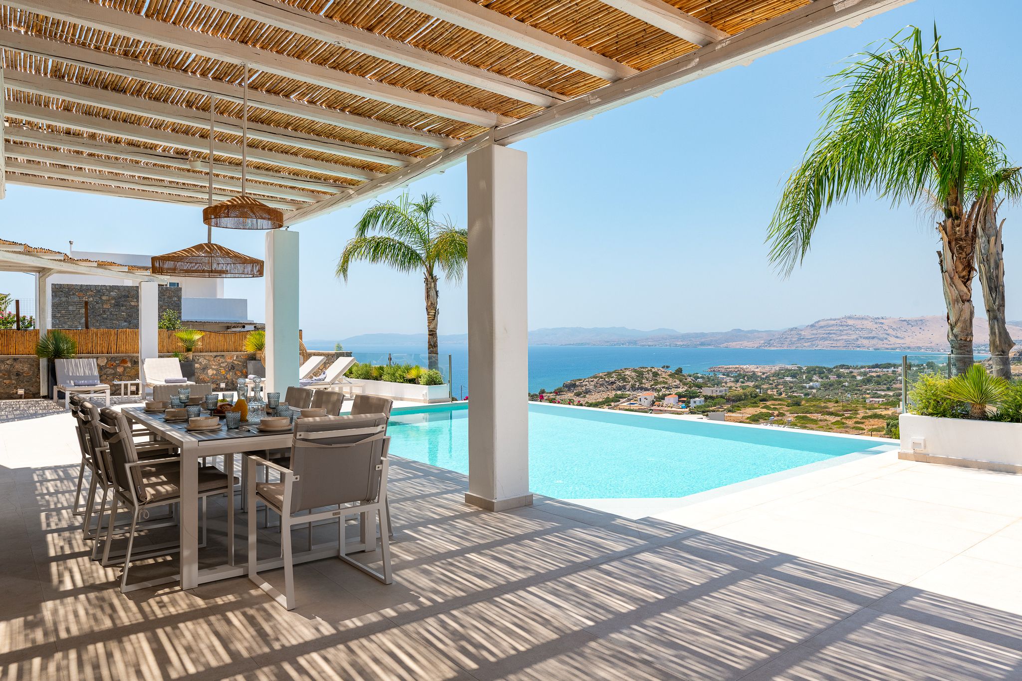 Dit is dan ook dé plek voor een heerlijke vakantie. Villa ‘Pearl of Pefki’ ligt tegen een berg, is van alle gemakken voorzien, omgeven door natuur met waanzinnig uitzicht op zee, heerlijk rustig gelegen, met op een paar minuten rijden de gezelligheid van het dorp, waar voldoende gelegenheid is tot winkelen, eten en drinken en verschillende strandjes.